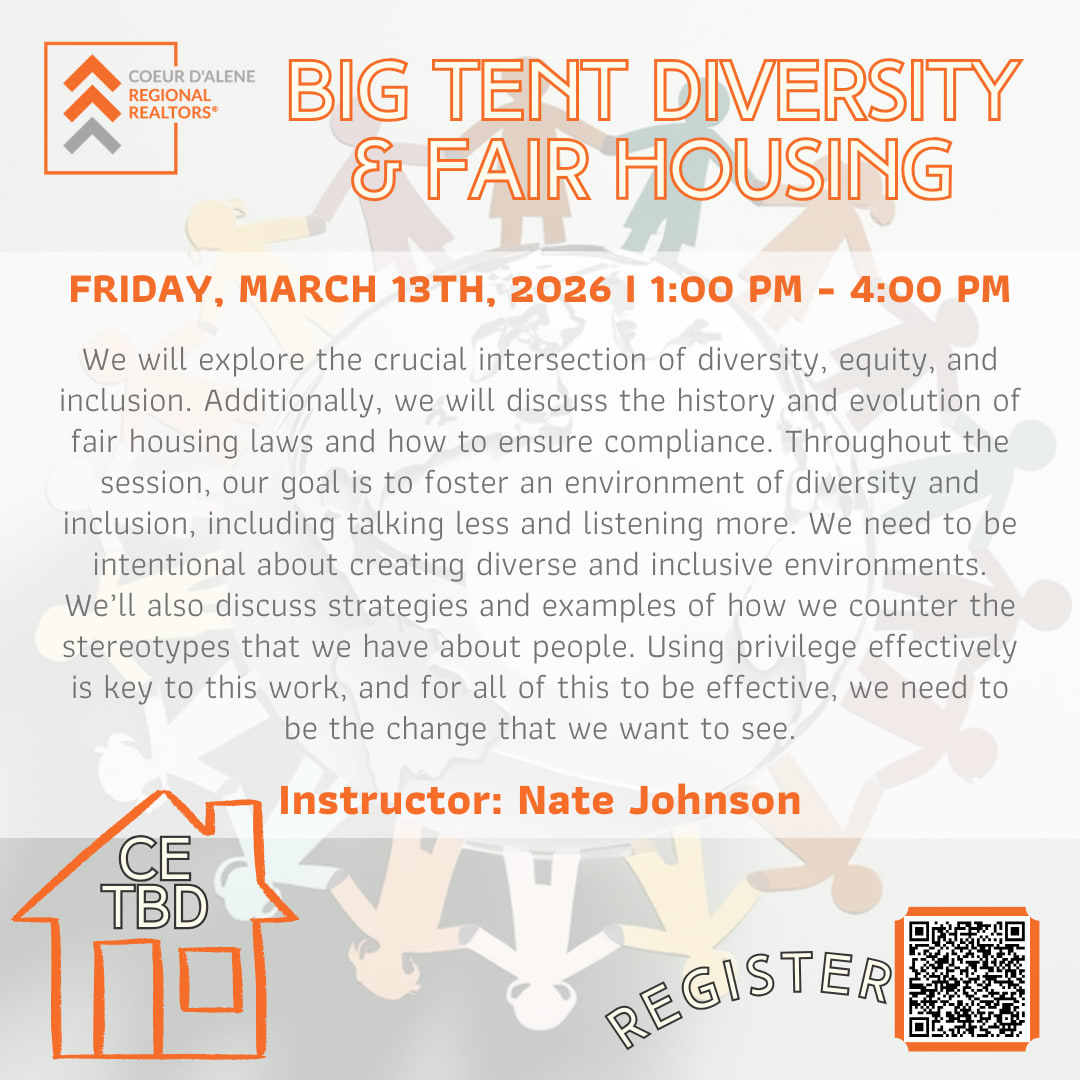 We will explore the crucial intersection of diversity, equity, and inclusion. Additionally, we will also discuss the history and evolution of fair housing laws and how to ensure compliance. Our goal is to Foster an Environment of Diversity & Inclusion, which will be discussed throughout the session. In addition to talking less and listening more. We need to be intentional about creating diverse and inclusive environments. We’ll also discuss strategies and examples of how we counter the stereotypes that we have about people. Using privilege effectively is key to this work and for all of this to be effective we need to be the change that we want to see.