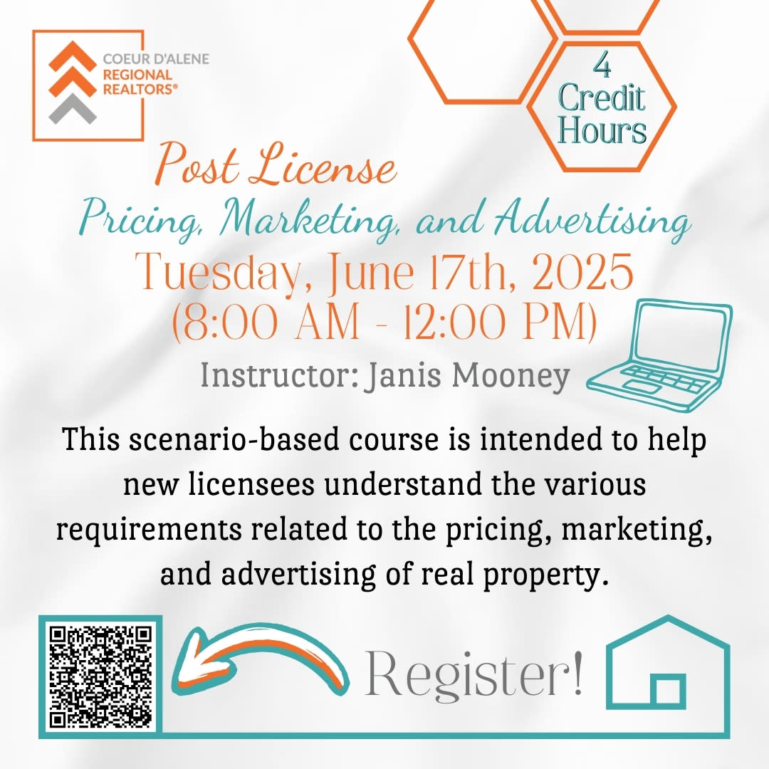 Post License 4 hour module. This scenario based course is intended to help new licensees understand the various requirements related to the pricing, marketing, and advertising of real property.