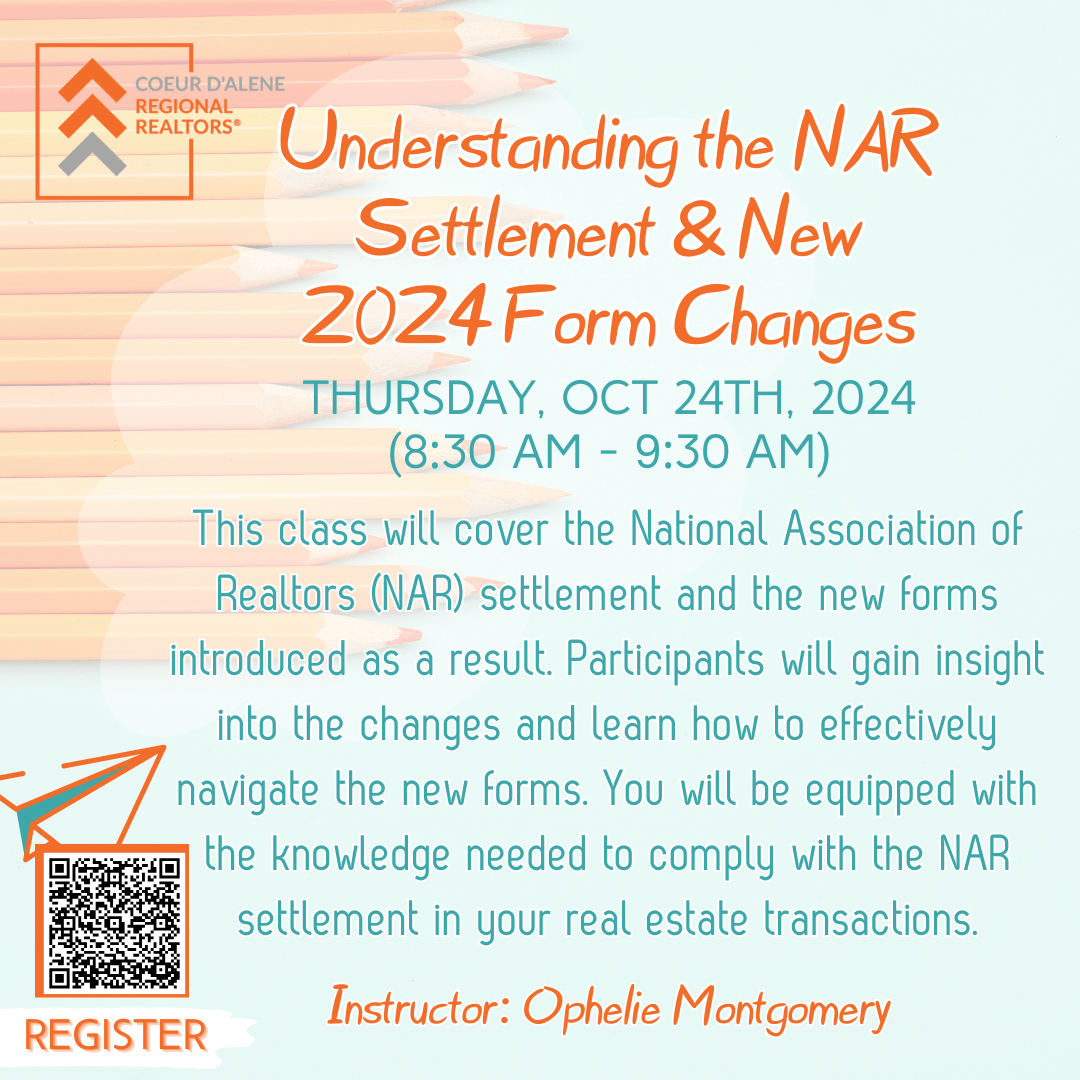 This class will cover the National Association of Realtors (NAR) settlement, and the new forms introduced as a result. Participants will gain insight into the changes and learn how to effectively navigate the new forms. You will be equipped with the knowledge needed to comply with the NAR settlement in your real estate transactions