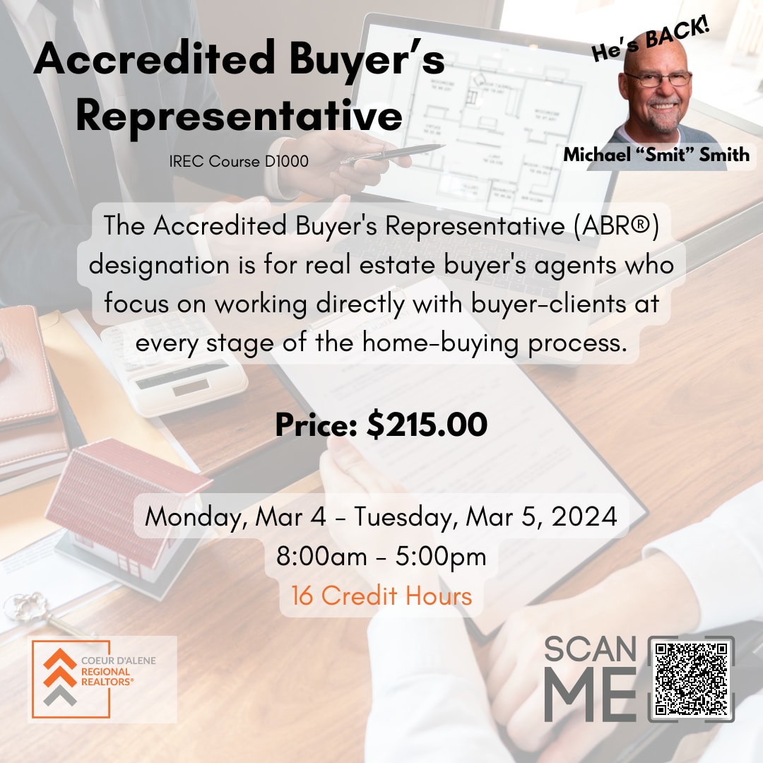The Accredited Buyer's Representative (ABR®) designation is for real estate buyer's agents who focus on working directly with buyer-clients at every stage of the home-buying process.