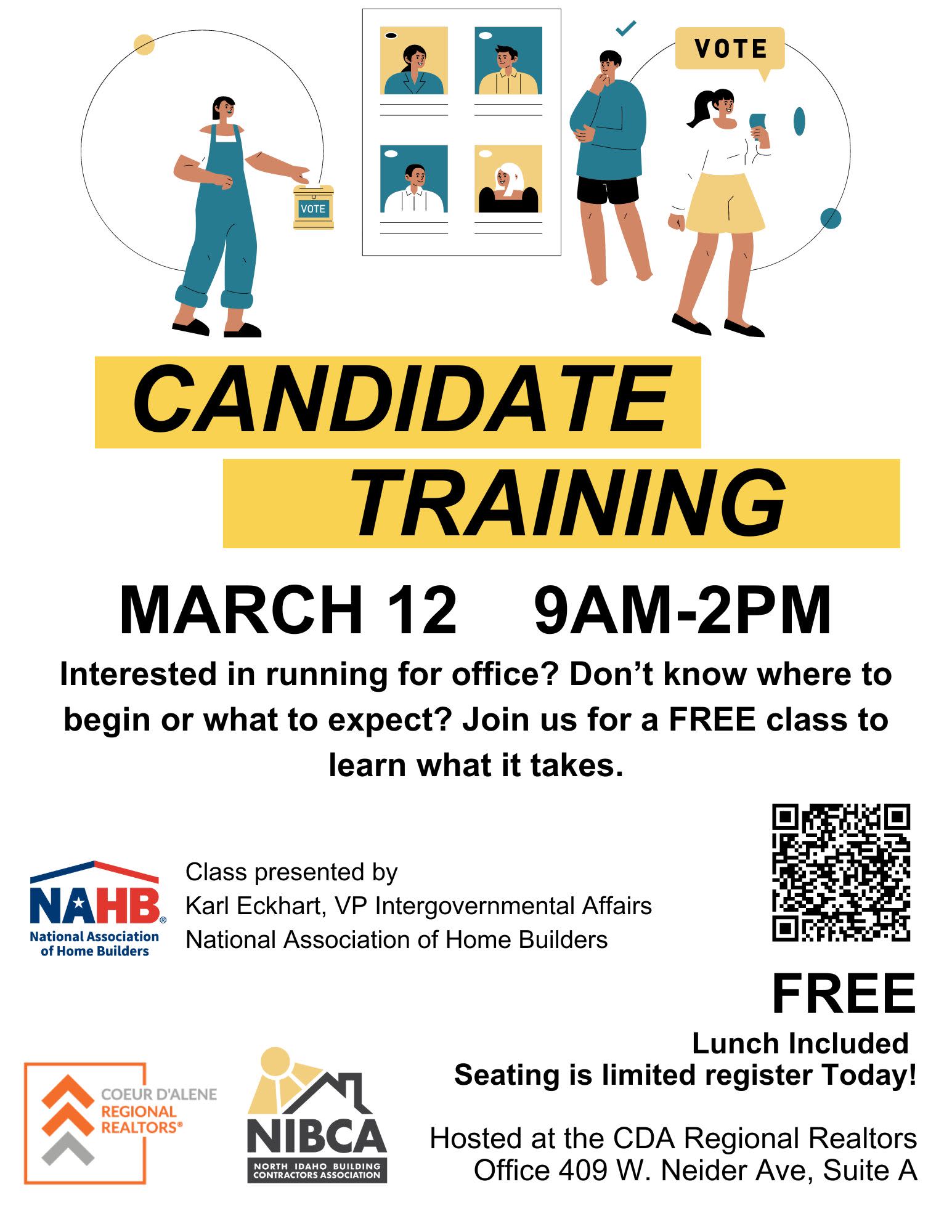 Interested in running for office? Don't know where to begin or what to expect? Join us for a FREE class to learn what it takes. Class presented by Karl Eckhart, VP Intergovernmental Affairs, Nat'l Assn of Home Builders.