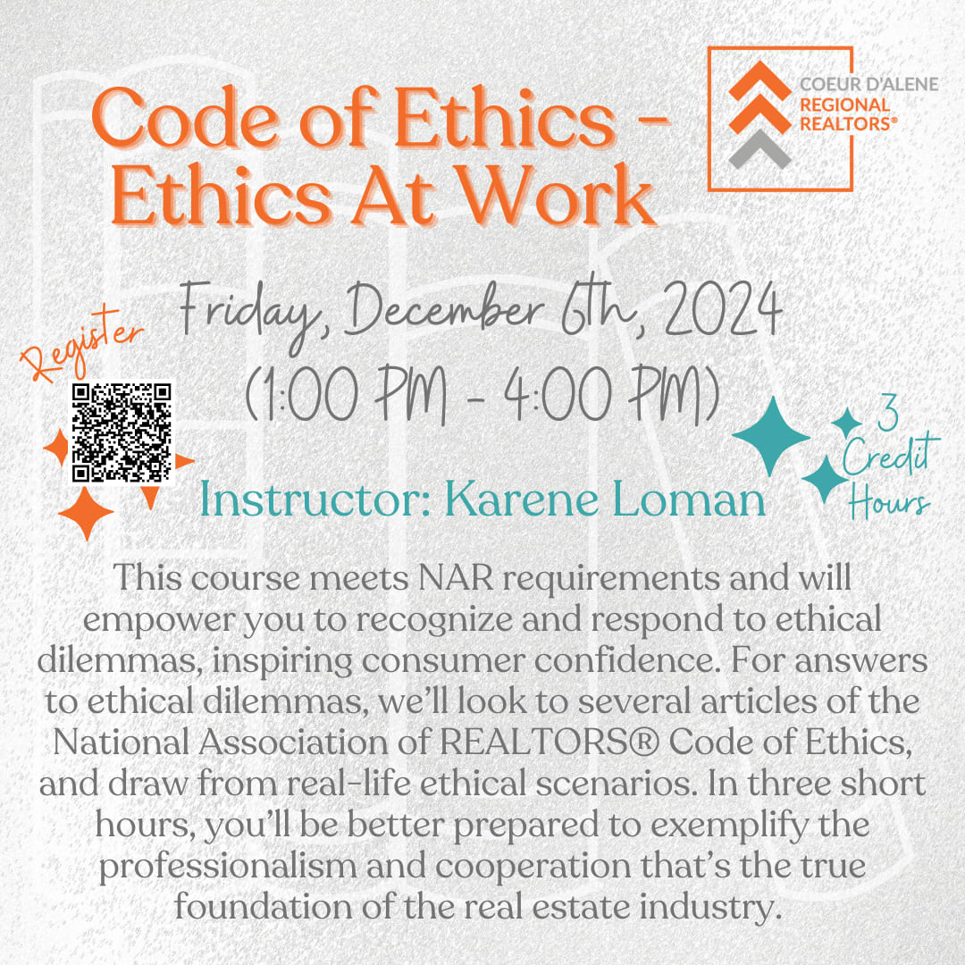 This course is designed to meet NAR requirements, and will empower you to recognize and respond to ethical dilemmas, inspiring consumer confidence. For answers to ethical dilemmas, we’ll look to several articles of the National Association of REALTORS® Code of Ethics, and draw from real-life ethical scenarios. In three short hours, you’ll be better prepared to exemplify the professionalism and cooperation that’s the true foundation of the real estate industry.