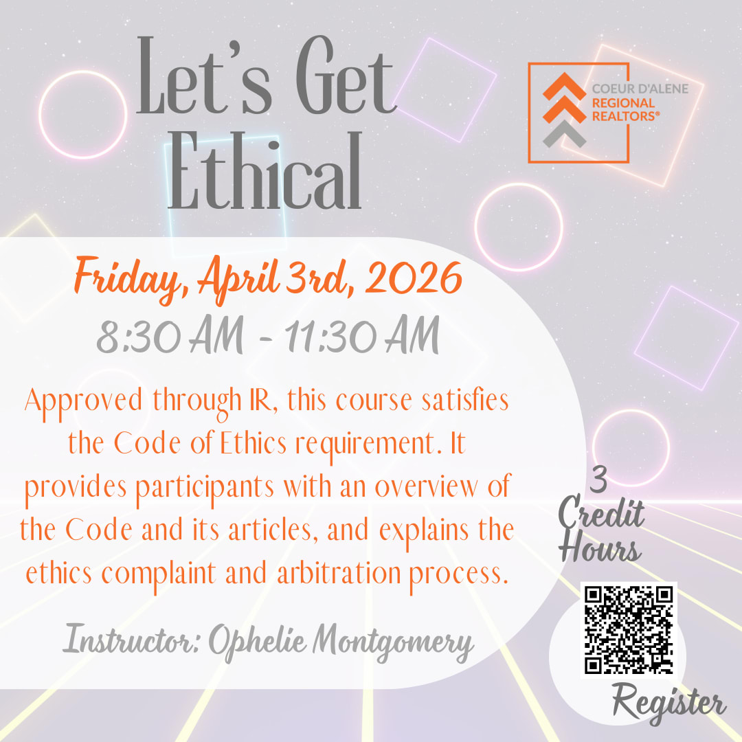 This course is approved through IR and satisfies the Code of Ethics requirement as well as offers 3 CE credits towards your license renewal through DOPL. This course gives an overview of the Code, its articles, and presents the ethics complaint and arbitration process. .