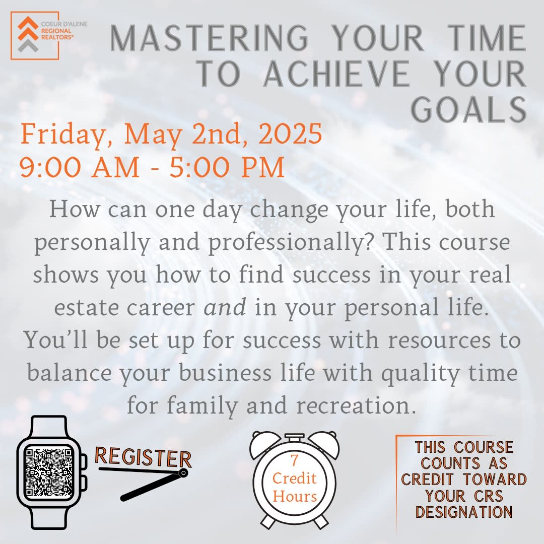 How can one day change your life, both personally and professionally? Mastering Your Time to Achieve Your Goals shows you how to find success in your real estate career and in your personal life. This course will give you the resources to balance your business life with quality time for family and recreation.