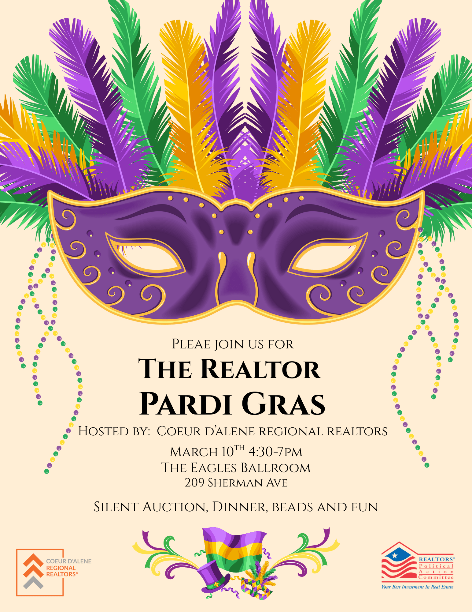 Register here: https://forms.rpac.realtor/fundraise/formid/id-cda-realtor-pardi-gras/